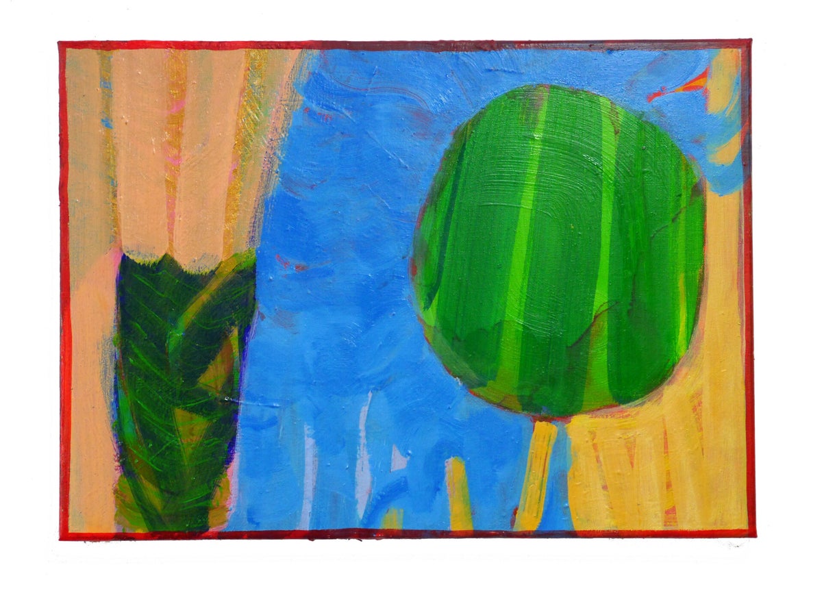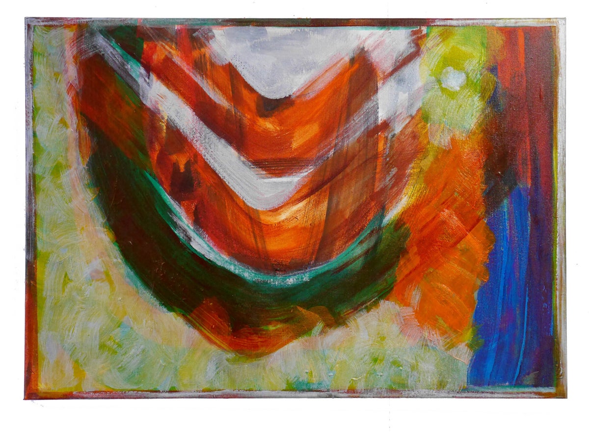 The first 4 paintings on this page were an early attempt through shape and colour to evoke the 4 seasons. I actually like Spring, and the simplicity of Summer, but I'm not too keen on the composition of the others and will probably end up painting over them.